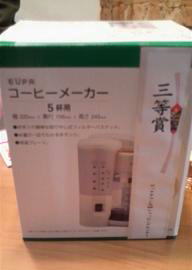 ロックタウン大田ショッピングセンターでは、 「平日のお買い物チャンス!お楽しみプレゼント」のスタンプカードがあり、平日のお買い物500円につき1個のスタンプを10個集めて応募ができます。なんと、つーちゃん家族は3等の「コーヒーメーカー」が当たっていたのを昨日発見。今日が渡し期間の最終日でしたので、つーちゃんパパはロックタウン大田ショッピングセンターまで行って「コーヒーメーカー」をゲットしてきたのですが。つーちゃん家族では、「コーヒーメーカー」を使う習慣はなく、どうしようと思っていたのでした。たまたま、その「コーヒーメーカー」を持ったまま、お家の購入祝いにつーちゃんパパのお友達のお宅に行き、当選の事を伝え、「使う?」と聞いたところ、「コーヒーメーカー」の購入を考えていたらしく、快く貰って頂きました。つーちゃん家族にとっては不要な物でも、必要としている家族の所へ届けられて良かったです。つーちゃん家族は、毎月「平日のお買い物チャンス!お楽しみプレゼント」を楽しみにしていたのに、近々取り止めになる噂を聞き、只今ブルーのつーちゃんママなのでした。