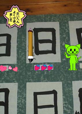 つーちゃんママは、小学校の学級評議員の為、長久文化祭のお手伝いです。しかし、今日に限って大雨。つーちゃんママの担当の「手作りおにぎり」販売も外の予定を急きょ中に変更です。お手伝いの前に、子供たちの展示物の見学です。長女は、習字の展示でした。つーちゃんママが書くより上手に書けていました。次は、長男のリース。先日、長男から「学校でリースを作るので、ドングリやビーズが欲しい」と言うので、三瓶へ家族皆で、ドングリや松ぼっくりを沢山拾って学校へ持って行ったのに・・・使ったのこれだけ?次は、次男の保育園コーナーへこの絵は、何の絵なんだー?つーちゃんパパは直ぐに判ったそうですが・・・。正解は、サツマイモだそうです。何故にカラフルなんだ?最近全色塗るのがマイブームらしい。次男は、もう一つ展示品がありました。ペットボトルの型で作った、「宝物入れ」だそうです。毛糸のグルグル巻きはクラスで一番に終わったと自慢していました。子供たちそれぞれの努力がみられました。感動に浸っていると、お手伝いの時間となったので、「手作りおにぎり」販売コーナーに行ってみると、まだまだ沢山のおにぎりが・・・急きょ、つーちゃんママは片づけ隊に変更になったので販売隊にお任せして大きな釜を洗うことにしました。販売隊に戻ってみると、あんなにあった「手作りおにぎり」がほとんど売れていました。すごーい。お手伝いの皆様お疲れ様でした。