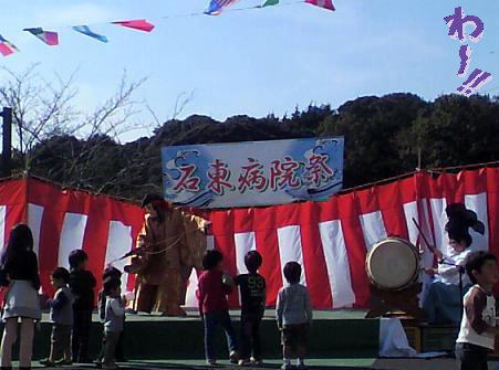 モーモーフェスタの後に石東病院祭に行ってきました。この石東病院は、大田市にある唯一の精神科の病院で、昔は暗い感じがしていたのですが、最近はこのようなイベントをして、地域の方にも病院を知ってもらおうと頑張っておられるので、気にせずにお祭りに参加することができるようになりました。行ってすぐに、刺鹿神楽があり、恵比寿が出たので長男と次男は大はしゃぎで神楽を見に行きました。そして恵比寿が終わったら、沢山のチョコのようなものを持って戻ってきました。普通なら飴がばらまかれるのですが、銀紙に包まれていたのでチョコかもしれません。つーちゃんパパ・ママには見せてはくれましたが、大切なものだから分けてくれませんでした。ゲームコーナーでは、魚釣りゲームや射的があって、子供たちは大喜びゲームがすべて無料で景品までくれるので、つーちゃんママも大喜びでした。ここでは、つーちゃんママのお友達のGABUリンゴさんたちも出店していたので、その前で長く居座ってしまいました。そしたら、子供たちが今度は綿菓子を食べながら帰ってくるんですよ お金を渡していないのに綿菓子の種類も イチゴ と メロン があり食べてみると本当にその味がするんです 綿菓子も進化しているなと感じました。これも無料でした。本当に、安くついたお祭りでした。そうそう、つーちゃんパパの職場の人も豆腐製品を売りに来ていましたよ。つーちゃんママは、しっかりそこでも買い物をして帰りました。
