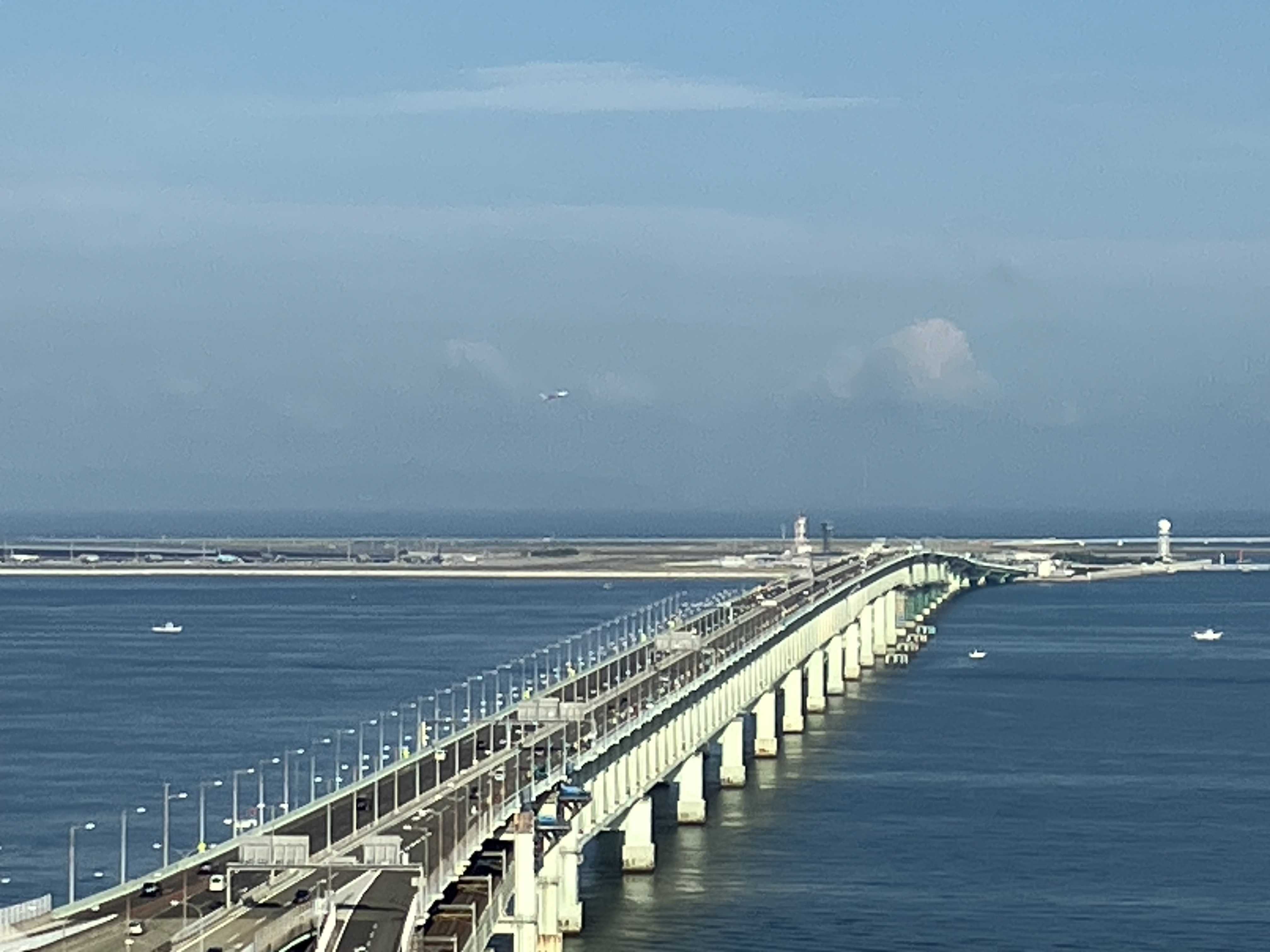部屋から関空が見えます。ちょっと遠いですが、飛行機の離着陸も見れて楽しい。frightrader24も見ながらしばし飛行機観察。
