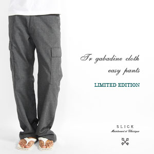 butterfly caughtより☆オフィシャルストア限定☆【送料無料】SLICK(スリック)TRギャバイージーパンツ【あす楽対応_...スーツにもよく使われる滑らかで高級感溢れるTRギャバを使用して作られたカーゴデザインのイージーパンツです。カジュアルながらも、しなやかで品のある表情は落ち着いたオフスタイルを演出してくれます。ウエスト、裾には紐が通っているのでサイズの調整が可能です。裾の紐はそのままにしてゆったりとしたシルエットを楽しんだり、絞って足元にアクセントをおいたりと、様々な履き方がお楽しみ頂けますカラーは合わせやすいブラックとグレーの2つをご用意しました。白シャツを合わせた上品で爽やかなスタイリングや、裾をあげて軽快なカジュアルスタイルをお楽しみ下さい By butterfly caught