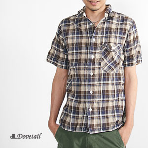 butterfly caughtよりお勧めは、パターンCインド綿を使用した独特な風合い感とワッシャー加工によりランダムな シワ感が生まれたこだわりの一枚。台襟裏にナチュラルな違う素材を貼り付けたユニークなデザインに仕上げました。開けて着ればさり気なく顔を出しアクセントに。様々な色の展開とチェックのパターンがありますので、お好みに合わせてお選びいただけるほか、ベーシックなデザインのシャツですので、何枚持っていても困らないのも魅力の一つですDovetail(ダブテイル)マドラスチェックウエスタンシャツS/S【あす楽対応_関東】By butterfly caught