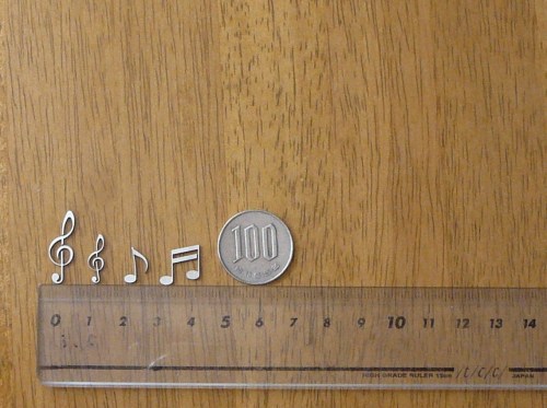 今度は自分用にすっかりおなじみになったパターンのイヤリング水色の甘い感じを抑えたくて(見づらいけど)メタリックなこげ茶のビーズを配置ミントチョコ風味の配色でした 本日のメインはこっちかなぁ~旦那製作所便りです(^^ゞ ちょっとピクトさんから離れまして私の友人受けするモノを作ってくれました 大小のト音記号と16分音符2つ私の楽器はヘ音記号は離れた点が2つあって上手い事作れないのです(;O;) 太さも弄ってあってクォリティ半端ないですここにはないけど横棒が3本入った32分音符も作ってくれましたチューバには滅多に出てこないけど木管さんにはあるからなw見たくな~~~いと怒られたけ・ど バイオリンの方にもいいわよね 8分音符も せっかくだから頑張ってこれで何か作ってみなくっちゃ~ ブログ村ランキングに参加しています よかったらバナーをぽちっとお願いします