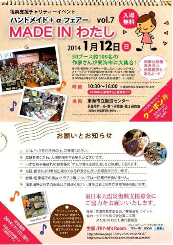 宣伝です出店します よかったら遊びに来て下さい 当日はすぐ横の市民体育館で成人式が9:30~11:00に開催されるため混雑が予想されるので、お気を付けてお越しください もうすぐだと言うのに呑気な事にまだ作ってますw 黒糸に緑が映えるペンダントトップ ラメ入りの黒糸を使っているのですが雫型ビーズの金属光沢に負けて全く目立ってないです 売れ残ったら自分のものにする気満々なので~す 後は成人式で振りそでのお嬢様がた(&親御さんがたも)と自分の為に天気が崩れない事を祈っておきます ブログ村ランキングに参加しています よかったらバナーをぽちっとお願いします