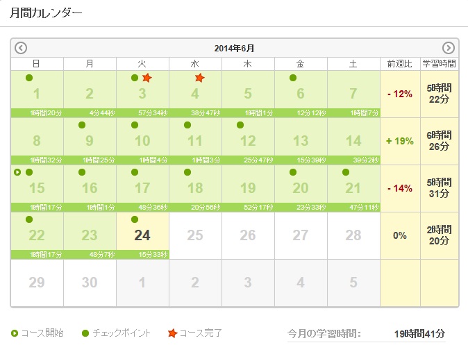 人気blogランキングへ最近も仕事、平和。帰宅時間が早い。というか、これが普通なんだよなぁ。。。。今までがおかしかったというか。健康第一だ。唯一の問題は残業代減少による収入減。こればかりは仕方ないが、対策は二つ。給料以外で収入を得るか、給料が上がるか。同時にやるしか、、、、6月2日(月):ラジオ20分・聞き流し80分6月3日(火):ラジオ45分・聞き流し80分6月4日(水):ラジオ60分・聞き流し80分6月5日(木):ラジオ60分・聞き流し80分6月6日(金):ラジオ45分・聞き流し80分6月7日(土):ラジオ55分・試験用60分6月8日(日):ラジオ45分・予習復習30分・試験用60分小計:880分+Y322分=1202分累計:1202分+1488分=2690分※今までの総計15295分(2013年11月~2月)+5043分(2月~3月)+4933分(3月~4月)+8072分(4月~5月)