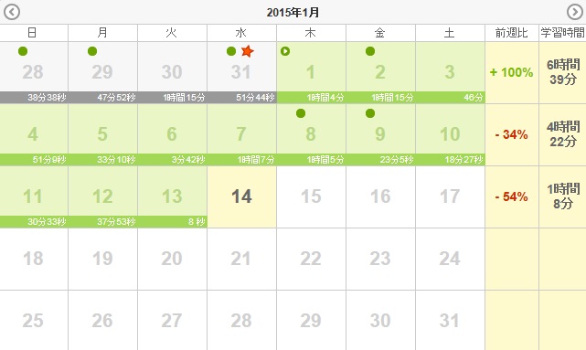 人気blogランキングへ昨日は久々に飲み過ぎた、、、今週3日しか働いていないのに、疲れは普段並み。嫌な流れは勉強で立ち切る。単語の復習、復習、、、、記憶は難しい!でも時間はドンドン過ぎていく。1月5日(月):ラジオ75分・聞き流し80分1月6日(火):ラジオ60分・聞き流し80分・留学80分1月7日(水):ラジオ135分・聞き流し80分1月8日(木):ラジオ135分・聞き流し80分1月9日(金):ラジオ95分・聞き流し80分1月10日(土):ラジオ105分・留学120分・予習復習60分1月11日(日):ラジオ90分・予習復習60分小計:1415分+Y262分=1677分累計:1677分+11936分=13613分※今までの総計15295分(2013年11月~2月)+5043分(2月~3月)+4933分(3月~4月)+8072分(4月~5月)+7919分(5月~7月)+15240分(7月~9月)+8793分(9月~11月)=65295分