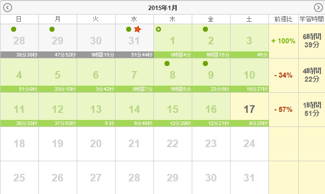 人気blogランキングへ単語に加えて、公式問題集で模試をやったり文法をやったり、、、リスニング力アップの為、シャドウイングもやらないと。色々勉強すべき事はあるが、詰め込み過ぎずに。仕事はもちろん、他にやるべき事は沢山有る。今日からまた会社へ、頑張ろう。1月19日(月):ラジオ135分・聞き流し80分1月20日(火):ラジオ45分・聞き流し80分1月21日(水):ラジオ120分・聞き流し80分1月22日(木):ラジオ105分・聞き流し80分1月23日(金):ラジオ35分・聞き流し80分1月24日(土):ラジオ90分・留学120分・予習復習60分1月25日(日):ラジオ105分・予習復習60分小計:1275分+Y119分=1394分累計:1394分+14785分=16179分※今までの総計15295分(2013年11月~2月)+5043分(2月~3月)+4933分(3月~4月)+8072分(4月~5月)+7919分(5月~7月)+15240分(7月~9月)+8793分(9月~11月)=65295分