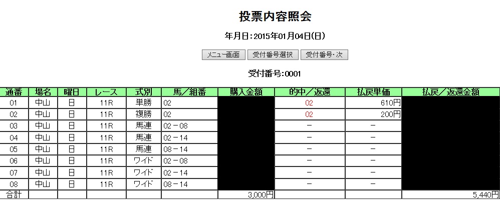 人気blogランキングへ馬券について、昨年暮れから単複中心に戻している最中。そんな中迎えた昨日の東西金杯。見事、両方共、的中!!この他、もう一つ当って、非常に幸先良いスタートを切れた。今年も回収率100%超え目指してやっていこう。これ、年末年始の家事貢献がようやく現れたのかなぁ、、、ありがたい。今日から仕事で憂鬱だが、これを励みに頑張ろう!ちなみに、年末年始で私の体重があまり変わらなかったので、調整する必要が無いのも楽だ。