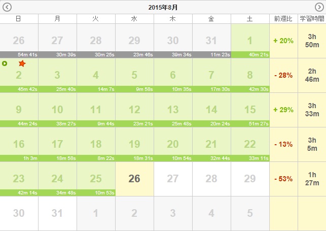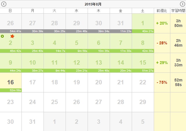 人気blogランキングへすっかり忘れていた、、、、8月3日(月):ラジオ95分・聞き流し80分8月4日(火):ラジオ135分・聞き流し80分8月5日(水):ラジオ105分・聞き流し80分8月6日(木):ラジオ120分・聞き流し80分8月7日(金):ラジオ110分・聞き流し80分8月8日(土):ラジオ120分・予習復習60分8月9日(日):ラジオ30分・予習復習60分小計:1235分+Y166分=1401分累計:1401分+28703分=30104分※今までの総計15295分(2013年11月~2月)+5043分(2月~3月)+4933分(3月~4月)+8072分(4月~5月)+7919分(5月~7月)+15240分(7月~9月)+8793分(9月~11月)+20424分(11月~2月)+5413分(2月~3月)=91132分