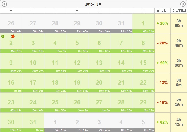 人気blogランキングへ会社付近でも私が住んでいる街でも、土砂災害警戒情報が発動中。また、避難情報も出ていて、非常に危険。連休明け、色々とあって早疲れている。今日も早く平和に帰りたいもの。8月31日(月):ラジオ145分・聞き流し80分9月1日(火):ラジオ145分9月2日(水):ラジオ130分9月3日(木):ラジオ130分9月4日(金):ラジオ40分・聞き流し80分9月5日(土):ラジオ90分・留学40分・予習復習60分9月6日(日):ラジオ120分・予習復習60分小計:1120分+Y253分=1373分累計:1373分+34423分=35796分※今までの総計15295分(2013年11月~2月)+5043分(2月~3月)+4933分(3月~4月)+8072分(4月~5月)+7919分(5月~7月)+15240分(7月~9月)+8793分(9月~11月)+20424分(11月~2月)+5413分(2月~3月)=91132分