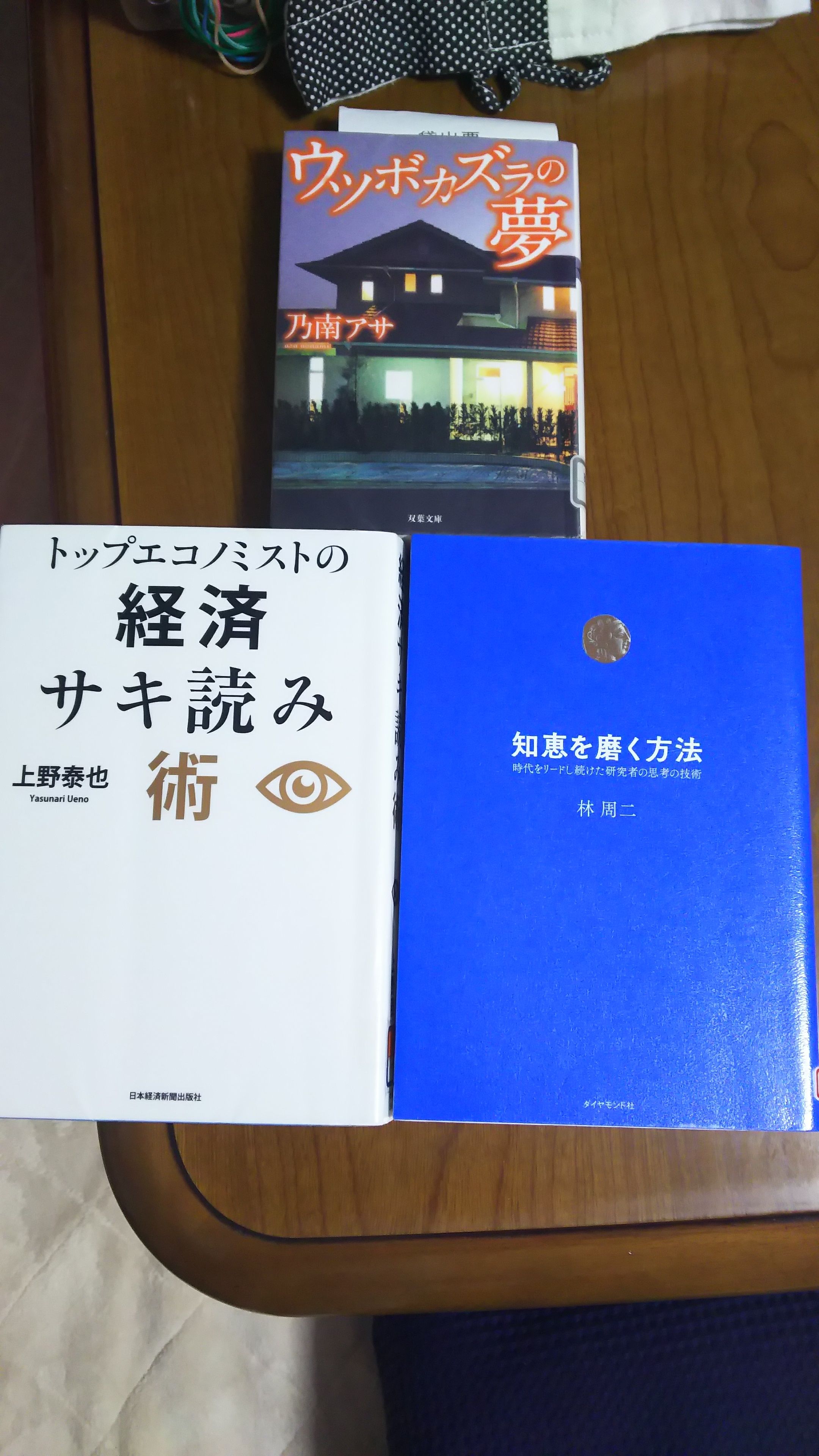 今回の本はこちら。相変わらず様々なジャンルの本を読んでいる。「ウツボカズラの夢」田舎から出てきた孤独な少女(主人公)が、都会の家庭に入り込み、最後は自分の欲しいもの全てを手に入れた話。出てくる全ての家族が崩壊しているし、主人+息子と関係する少女も感心するくらい狡猾だし、読み終わって気持ちの良いものでは無かった。それがウリなのかもしれないが。「トップエコノミストの経済サキ読み」多くの統計データを元にして、あくまで客観的に分析しつつ、ビリギャルやケピティ等、流行りの人と結びつけて経済を解説している。連載されていたコラムをまとめたものなので、一つ一つの節が読み易い長さだ。「知恵を磨く方法」90歳を超えたの東大名誉教授が、「知恵」を具体的に定義づけている。『困難な場面でなんとか工夫する力』『偶然(セレンディピティ)を活用する力』『その場で発揮できるユーモア』『勘をきちんと働かせるため力』など。そして、これらを得る方法を解説してくれる。若干硬い文体だが、内容はためになる。今、色々行っている事が随所に出て来たので、やっていることが間違っていないことがわかり、一安心。ウツボカズラの夢 (双葉文庫) [ 乃南アサ ]ウツボカズラの夢【電子書籍】[ 乃南アサ ]トップエコノミストの経済サキ読み術 [ 上野泰也 ]トップエコノミストの経済サキ読み術【電子書籍】[ 上野泰也 ]知恵を磨く方法 時代をリードし続けた研究者の思考の技術 [ 林 周二 ]知恵を磨く方法時代をリードし続けた研究者の思考の技術【電子書籍】[ 林周二 ]
