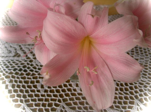 今朝こんな綺麗なお花をお隣さんからいただきました アマリリスに似た淡いピンクのお花です 夏は切花が長持ちしませんよね!ある日こんな話をしていたら良い方法があるよ~って教えていただいたのが 「ハイターを数滴入れる」でした早速ためしてみると水の汚れが少なくていやな臭いやぬめりも無いんですね~仏壇のお花も長持ちするようになりましたよ。 おまけの画像なんに見えますかね?適当に切ったり縫ったりのいい加減なぬいぐるみ!もうすぐ4人目の孫が誕生予定です女の子のようですその子が遊んでくれたらいいなと・・・・・・やさしいさわり心地にしています 明日の晩からお産まで家族ぐるみ4人でやってきます普段はじいちゃん、ばあちゃんの二人暮しはたして近くに住む孫もまじわってどんな賑やかな日々を送ることになるのでしょうか?