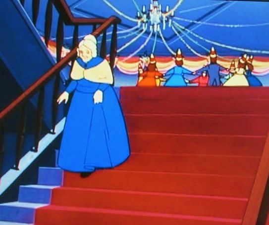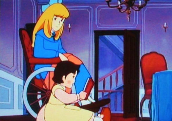 ゼーゼマン家のお屋敷では、長い階段でハイジとおばあさまが