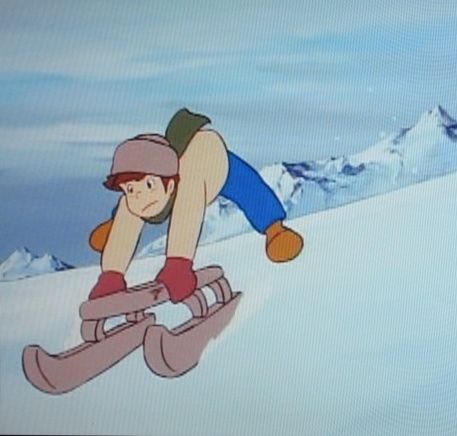 学校の帰り、ハイジはペーターにソリ大会の話をします。