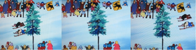 そこに学校の子たちが現れ、ペーターに今年はソリ競争に出るのか?と尋ねます。