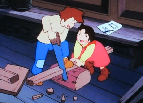 ペーターとハイジは毎日、学校が終わってから、せっせとソリ作りに