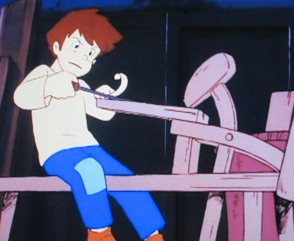 授業中、ソリの出来上がりを思い浮かべるペーター。