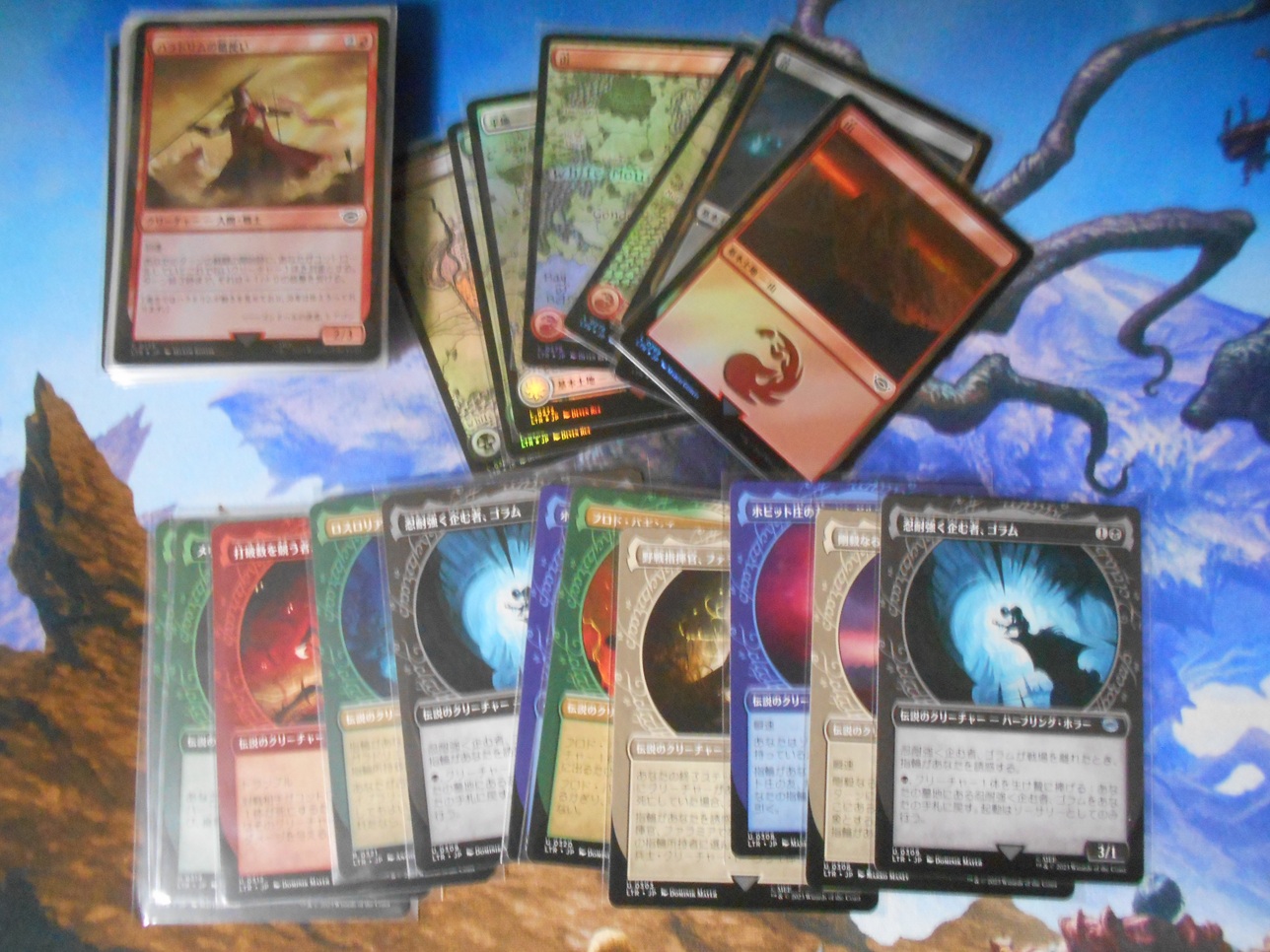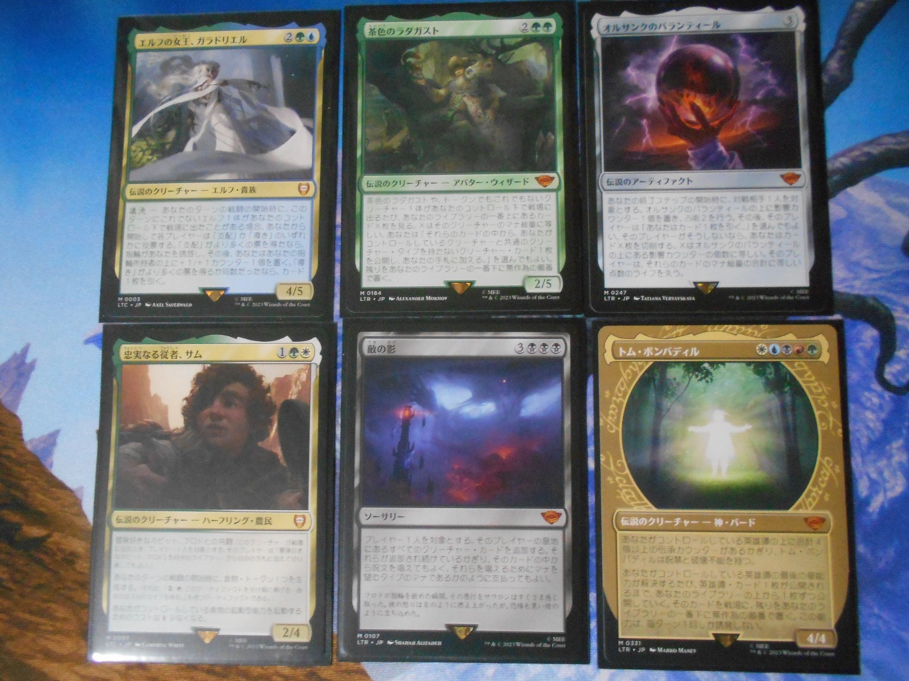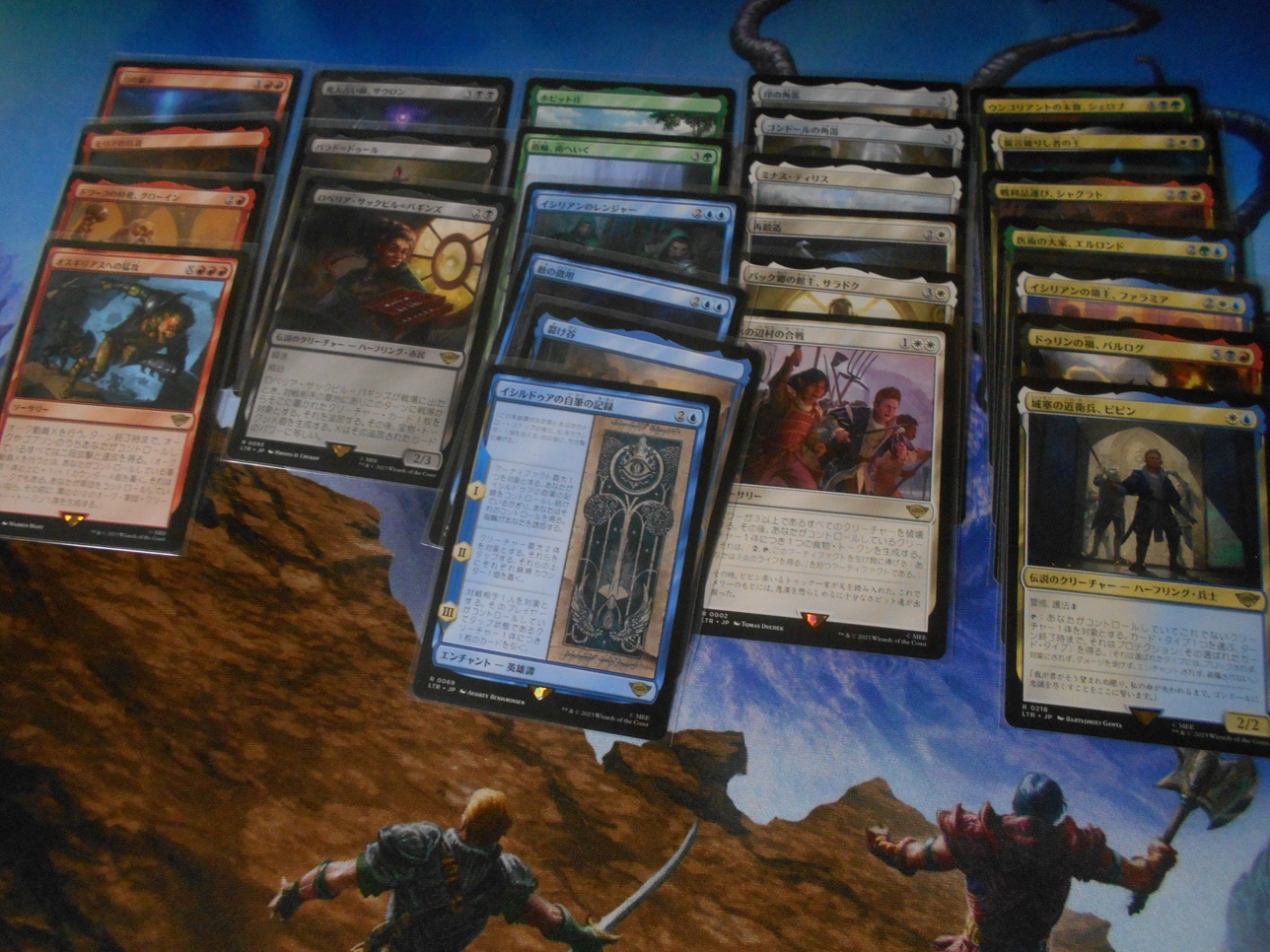 指輪物語で一番集めたいなと思ったカードたち。いったい何枚でるんだろうかと戦々恐々していたのだけれど、結果はFoil等を含めて28枚。そのうち被りが8種。被りなしが20枚あったので。うーん……こんなんものなんかなぁ。少なすぎて残念(´・ω・`)全然足らないでござる。特に神話枠が一枚もなかったんご。たぶんショーケース枠に持っていかれた、許すまじトム・ボンバディル( ゚Д゚)