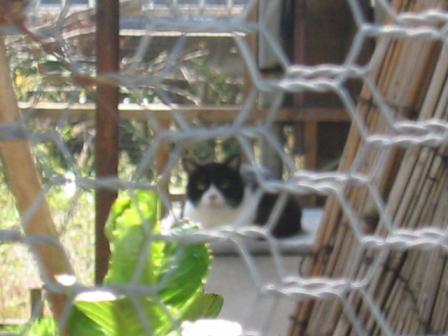 先週の月曜日、家で白ぶちを激写した後ちょっと歩いて駅前まで。天気いいからきっと途中の家の黒白が日向ぼっこしてるはずーとカメラ持参で。ピントが金網に。。。よし!見れるか?最近はベランダにいることもあるようです。家の周りをぐるっと金網で囲ってある家です。次の日通ったらいつも通り勝手口で日向ぼっこ。珍しく寝ないで体起こして外見てました。同じ柄の猫が2匹いるようで、もう1匹が花紀京似かな?で、この家のお向かいのアパートに茶トラがダッシュして行った!あれれ?猫が途中で消えたよ?横に回ると。。。な!なんと階段が!猫がここを登って部屋に入ったのねー。窓の柵のトコには猫ちゃんが通れるように穴が開いてる。階段手作りかな?ベランダにも土間のように木で綺麗に足場作ってあるのよねー。