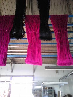 秩父銘仙館にて、機を借りての機織。縦糸を機結びした後も、切れた糸をどこに入れるかを間違いっぱなしで、なかなか織り始められず。細かい作業に神経もぐったり。行く度に、違う先生がいらっしゃるので、そのたびに一から状況を説明して見て頂いて、教えていただくのですが、それが、先生によってそれぞれ微妙に違うことをおっしゃるので、それも、大変。勿論、先生方が悪いわけではありません。こちら素人なので、ずぶの素人に説明することに長けている先生とずぶの素人に説明することになれていない先生がいらっしゃるというだけのことです。しかも、急に途中から、短時間で教えてくれといわれても、先生だって、困りますよね?そうこうしているうちに、日数だけが経ち、悲しい気分で、悲しい夢ばかり見ていて、もう、織物なんか、出来ないのじゃないかと思っていた今日この頃でしたが、何とか今日、織り始めることが出来ました。教えてくださった沢山の先生方、ありがとうございました。すでに、織りあがったかのような感激です。写真は、試し織り。すでに、横糸は決まっているのですが、 「他の色で織ったらこんな感じ」と言うのも見てみたく、手持ちの絹糸で織ってみました。(一番下の、ピンクが強いものが、実際に織る紬横糸です。)横糸で、ずいぶん変化があるというのも良い勉強。色は気に入ったものがあったので、次のときは、その色に横糸を染めてもらうのもアリかな??「織り始めた時には 9割以上終わっている」というのを改めて実感。ここまで来るの、長かったなぁ、、、、。とはいえ、自分の織っている物、ひどいです。織りムラは、めちゃくちゃあるし、耳はぎざぎざだし。でも、第一作。大切に、勉強しながら織ります。下の写真は、苦労の跡。左は かせ糸を大きなボビンに巻き取っているところ。右は、ボビンから管<くだ>に巻き取るもの。