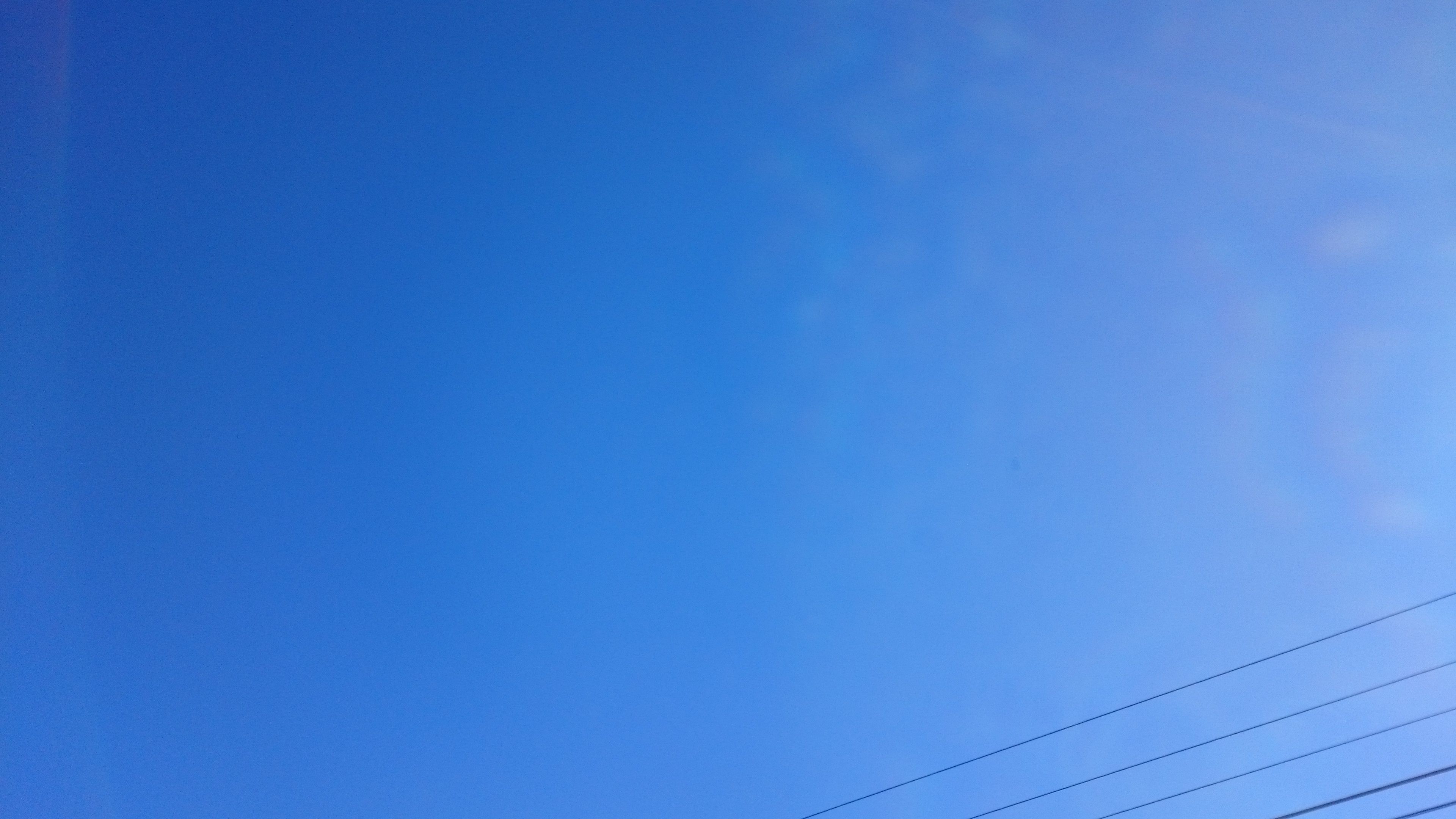 あーちゃんを保育園に送りに行った時。突き抜けるような青空。雲は空の端しっこに少しあるだけ。今日は洗濯日和
