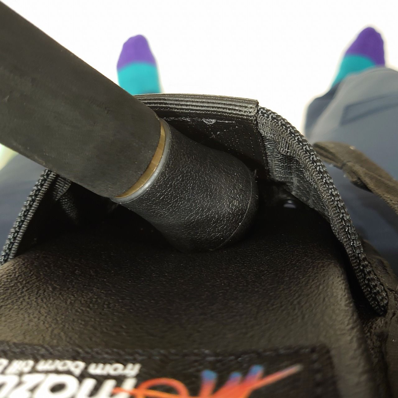 これはお持ちの腰ベルトや救命胴衣の腰ベルトに取り付けて、この袋の部分にロッドをスッポリ入れるだけの簡易的なギンバルです。