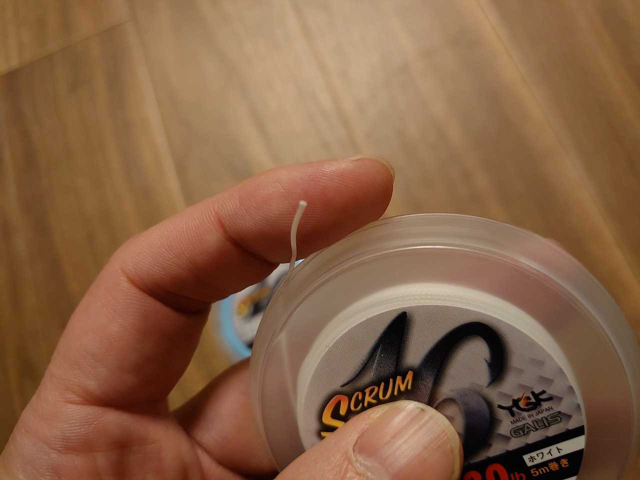 さてさて、このスクラム16がキャスティングによる釣りでどのように使用されているのかと言うと、ショックリーダーとPEラインの結び目から50センチ程度PEラインにこのアシストラインを被せて使用するそうです。