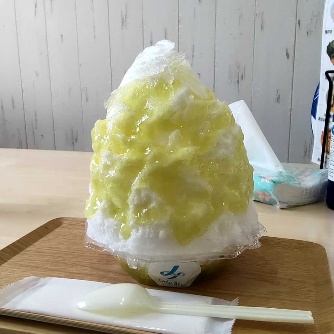 おやつにかき氷を食べました。赤塚製氷のところです。アークスのマスカット(850円)中にソフトクリームが入っています。中盤からきつかった。今日はお腹いっぱいの日ですね。ふわふわ氷で美味しかったです。ごちそうさまです!