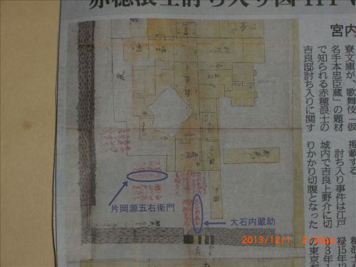 先日の道新の夕刊の記事で、皇室に伝わる古文章など39万点を所蔵する宮内庁書陵部の図書寮文庫が、歌舞伎「仮名手本忠臣蔵」の題材で知られる赤穂浪士の吉良邸討ち入りの関する資料6点を、12月2日から同庁のホームページ(HP)に初めて、提載する。討ち入り事件は江戸場内で吉良上野介に切りかかり切腹となった赤穂藩士浅野内匠頭の敵討ちのため、大石内蔵助や堀部安兵衛ら赤穂浪士47名が翌年の元禄15年12月14日(1703年1月30日)現在の東京墨田区にあった吉良邸を襲撃した。忠臣蔵は映画、テレビ等で、古くは長谷川一夫・片岡知恵蔵など出演から始まり多く観ました。明日2日が楽しみです。エルプラザの地下道に毎年恒例となっているクリスマースツリーが飾れました。下の写真は管内に飾られた折り紙で折ったサンタクロースです。