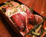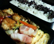 まずは新年一発目のお弁当から~~~~ イカフライ、いろいろ野菜炒め、 ベーコンソテー、卵焼き、プチトマト、 ゆかりかけご飯今日からいよいよ学校が始まりました休みボケが続く子らは案の定早寝なんてできなかったし早起きもできませんでしたそれは私もコアサも似たようなもんなんだけど で、今日からさっそくお弁当作り開始寒くて眠くて布団からなかなか出られなかったよー今年はコアサもできるだけお弁当もって行きたいって。 不況の波はかなりな荒波越えるためにはコツコツと節約が大事ね禁煙もそのひとつかなぁータバコ代もバカにならないからねー コアサもがんばってるから私もがんばらにゃ~なぁ~ダイエット?うーん・・・お正月太りだけはどうにか避けられたけど現状維持いや~~~~・・・ 維持は良くないっしょーーー(すでにブタだし)