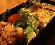 いよいよ3年生になって、調理師免許取得のための実習授業が増えたので毎週水曜日はお弁当無しになりました~わーーーーーい\(^o^)/ へ?授業が増えたのになぜお弁当が要らないの?とお思いでしょうが学校は休みじゃないんですよ。学校給食の調理員さんみたいな集団調理の実習をするので作ったものを食べるから要らないんです。わーーーーーい\(^o^)/今日はミックスフライ定食みたいなものを作るらしいです。いいなぁーーーー 作ったものを復習がてら家でも実戦してもらえたらもっともっと わーーーい\(^o^)/なんだけどなー ********************** 火曜日のエン弁 鶏の竜田揚げ、レタス、もやしと小松菜のお浸し、 プチトマト、焼豚とMIXベジ入り卵焼き、 (山菜おこわ)