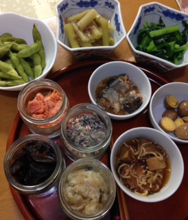コアサは車の運転が好きでした。家でじっとしてるのが嫌いで「旅行が好き」というわけじゃないけどとにかくあちこち出かけるのが好きでした。 コアサは海が好きでした。ただ見てるだけでもよかったし海釣りやサーフィンなどの海遊びも好きでした。 庭いじりも楽しんでいたと思います。私が好きだからつきあってくれてたのかな?と今となってみると思うけどwふたりでいろいろ考えて手入れするのは楽しかったです。 ドラマを録画して溜めておいて続けてみるのも好きでした。休み前にはひとり夜遅くまで起きていてずっと見ていました。 ほかにもいろいろあったと思うけど思いつく限り、今はそれができなくなりました。 眼が不自由になり、脚も以前のようには動かず、感覚も戻らない。言葉も上手に出てこなくなって理解速度や認知速度がスローになりました。日常生活に困ることはないけどそれでも今迄通りじゃない。なんでも自分でやってきたと自負していたコアサだけど独りで判断する自信も無くなって いろんな人の手助けが必要になって悔しくて、情けなくて、哀しくて生きるってなんなんだろう となんであの時に死んでしまわなかったんだろう と死んだほうがよかったんじゃないか と退院してから何度か涙を流しています。もちろん、それは自分が辛いのもあるんだけどそのことによって私に苦労を掛けていることをものすごーーーく 苦に思っているコアサなのでその苦しさがわかるだけにしんどくなって、わーー!! と叫びたい衝動に駆られてもここで私がくじけてどうする!となけなしの気力を振り絞る私なのです。 そんなコアサが、退院してから楽しみを見つけました。それは「晩酌」w今迄、早朝から深夜まで働き詰めの生活で夕飯すら家で食べることが少なくてゆっくり晩酌なんてできませんでしたからね。 だけどどうやら本当は、日常の憂さを煙草で紛らわしたいようなんだけど「悪いことはあってもイイことは何ひとつない!」とDrからきっぱり言われw私にも 「絶対煙草はダメ!」と怒られてwしぶしぶ今も我慢しています。 でも「お酒なら、適量ならまったく問題ない。むしろ血液の循環が良くなるし 自律神経のバランスを保つのに役立つ場合もある。泥酔するほど呑むのは良くないけどほろ酔いならいいですよ~」とDrからお墨付き^^「だったらいいわよ~~~」と私もOKしました。 もともとビールか酎ハイ派のコアサでしたが今回の入院ですっかり食が細くなっちゃってビールや酎ハイを飲むとますますご飯(つまみも)が食べられなくなってしまいます。そこで私が勧めたのがw「日本酒」。コアサは日本酒が苦手でした。だけど試しにカップ酒を買って飲んでみたら旨い!これはイケる!!とお気に入りに^^ しかも日本酒に合うつまみがこれまた美味しく感じるようで今迄通りとはいかないけど食も進むようになりすっかりはまり込んでしまいましたw 最近、暇さえあればつまみのことを考えるてよ^^やっぱ楽しいことがひとつくらいないとさ~これでもっと呑ませてくれたら言うことないんだけどーー^^ あら、聞き捨てならないお言葉。わたくしは夫の健康を考えてセーブしてるんざます。けして ケチではありませんことよ!!(。-`ω-)ぶー <本日のおつまみ>だだ茶豆(冷凍)フキ(水煮)のおかか煮小松菜お浸し鮭の西京漬け焼きほぐしサンマ甘辛煮燻製うずら卵すき焼き(前日の残り物)数の子入りわさび漬けシイタケ煮物塩昆布 最近、ギューがバイトで夕飯不要な時はこんな常備菜になるものばっか作ってますwさすがにこれじゃギューにはボリューム不足なのでギューが居る時は +ハンバーグ~ とか +生姜焼き~とか急にグレードUPするはつ子家です^^