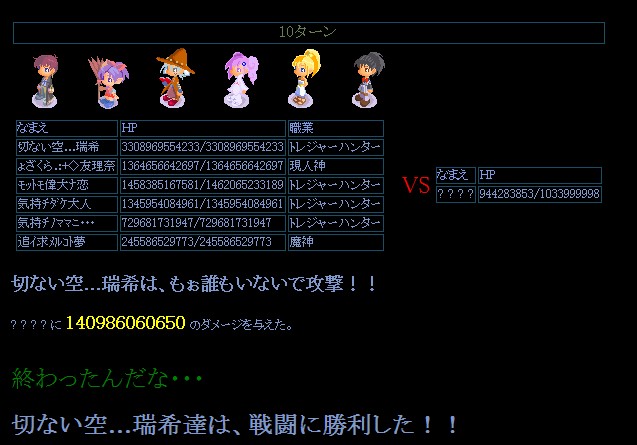昨日 81レベの龍を消して猫をつくりました。↑○○君へ―名前 すまん(笑)これはわざとじゃないですw ギルドに入ったときギルドの人から「あだな 萌ちゃんでいいよね?」と言われたときに気づきましたwそういえば 名前wwwwって気づくの遅かったわ^^てな感じですから 気にするな。そんだけー話は戻りますけど最近はメインの羊を放置してサブを育ててますw獅子と猫の同時進行はさすがにきついですがwまぁ、がんばります^^↓はマスターモンキー戦の時のSSです。これは友達と撮ったSSですわかりますか?マリンデザートの中心で愛を叫ぶです。はい、意味不明ですねw最後のSSはおまけですw