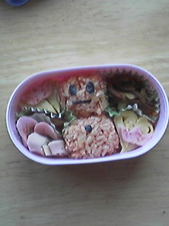 父が仕事でお弁当を持っていくようになったので コロちゃんにもお弁当を作ってます。今日で 2日目。コロちゃんは 喜んで食べてくれます。初日。ケチャップご飯 卵焼き 魚肉ソーセージ チーズハム巻き 野菜炒め トマト2日目。ふりかけご飯 卵焼き チーズハンバーグ ちくわキューリ 花ハム