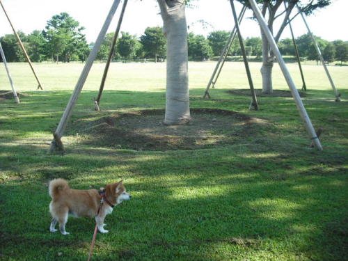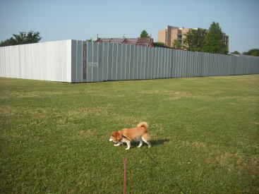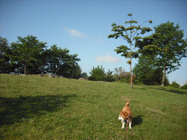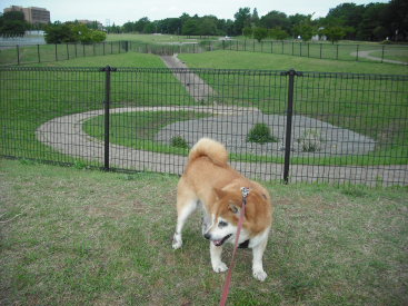 昨日、一昨日と急に夏日となった東京地方その中を無事に幼稚園の園外保育は終了しました。でも、暑かった〜(^_^;)やはり激しい日差しの中にいきなり一日出ていると疲れます(T_T)夜には脱力感がぐっと押し寄せてきました。当然、それをはねつける力の無いもも父さん早くにお布団で夢の中でした(^_^;)場所は時々散歩に行く都立野川公園元ゴルフ場だったのでそれなりに木陰は豊富ですが蒸し暑いのには閉口しました・・・(x_x)そして本日はいきなり気温も急降下・・・・・昨日より7度も一気に下がるそうです。昨日は28度、今日は21度だそうですね〜(^_^;)21度というと快適な気温ですがこのところの夏日の連続で今朝は寒く感じました。また冬用のコートで出かけた今朝の散歩でした(T_T)さて今年の秋には国体が東京で開催されます。我が町にはサッカーの会場があるんですね〜第13回全国障害者スポーツ大会サッカー競技が開催されます。その一環としてサッカーの関東地区ブロック別大会が今日から開催です。きっと大勢の人たちで今日明日は賑わうのでしょうね〜まあ秋の本大会のリハーサルも兼ねてですが今朝の散歩ではいよいよ準備万端整って会場はすっかり出来上がっていました。いつもの散歩コースの武蔵野の森公園のお隣にある朝日サッカー場が会場なんですね〜今朝の散歩の時間ではすでにガードマンの方やらが配備され駐車場が本日は貸し切りのことを一般の方に知らしてました。武蔵野の森公園はワンコの散歩でも遠くから車で来る方も多いんですね〜サッカー場としても全面芝生で素晴らしい施設です。昨年大工事ですっかり綺麗になったのはこのせいだったんですね〜まあしかし、国体といいオリンピック誘致といい予算が豊富ですね〜(☆_★)そんなに税金を納めてない私は批判できませんが・・・・(^_^;)そしてすぐお隣の町でも別の競技会場もあってスポーツ施設の多い武蔵野の森公園の近辺は明日まで大賑わいでしょう〜そんなこの頃です(*^^)v写真昨日の朝は良い天気でした。サッカー場の後方に有る丘から会場全体が見えます。後方の入り口付近にはテント村も出来ていますね〜(*^_^*)