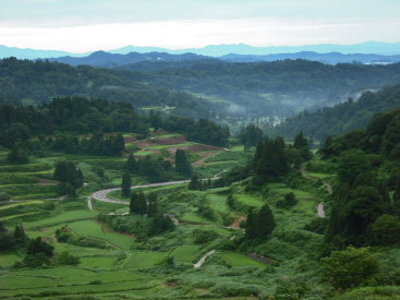 さてさて一日遅れの報告となりました。日曜日は7時頃帰宅疲れてそのまま月曜日朝まで夕食も食べずに寝てしまいました(T_T)やはり無理の効かないお年になったもも父さん今回つくづく感じました(*_*;とは言え棚田の朝焼けが出なかったので秋にもう一回チャレンジですv(^-^)土曜日、夜11時半に自宅出発メンバー5名を拾い集め我が町を出ること12時。いつもならスヤスヤ別世界の時間ですね〜関越道所沢インターから一路新潟に・・・・・さすが夏休み初めての日曜日とあって夜中でも交通量は昼間並みの多さでした。が関越トンネルを抜けると一人旅状態いつもながら新潟まで行く車はめっきり少なくなります・・・・・石打インターで降り国道に・・・お馴染みの冬場の難所十二峠を越えて松之山にそしてさらに真っ暗な田んぼ道を走れば目的地松代日本一の棚田「星峠の棚田」に3時40分到着です。外の気温は17度、さすがに涼しいを通り越してちょい寒いくらいでした。車の中でしばし仮眠タイムですがう〜ん、15分は寝ましたかね〜(^_^;)メンバーは走行中に夢の中だったのでいたって元気撮影場所を懸命に探してました。4時を回るとボチボチ明るくなってきた(*^_^*)そして山の向こうが紅く焼けてきて期待に胸はドキドキこんな興奮は若い女の子に会った時くらいか・・オイオイ\(^^;)と、山向こうの空が焼けただけであっという間に朝焼け消滅(x_x)あれ〜話が違う・・・・・そして雲海も朝霧がちょっと出ただけで終わりました・・・(´ω`)(写真上)今回は朝やけなし、雲海も無しで普通の朝風景の棚田そこに棚田の持ち主さんが畑手入れでやって来ました。話を聞くと前日が真っ赤に焼けたそうで・・・・・残念なり〜秋にもう一度チャレンジです。5時過ぎに現場退去一応「蒲生の棚田」に行って見ました。ここも雲海は無しで普通の朝風景取りあえず撮影して朝食のために出発とは言え田舎では朝食べるところはなし(´ω`)40キロ離れたファミレスまで行くことに・・・・コンビニで買ってもいいのですが女性がいるのでトイレ完備のファミレスにしました。ところが7時到着でしたが開店8時とのこと車の中で1時間待ちました(´ω`)普通、地方都市でも7時開店が多いのに・・・・・・で9時にファミレス出発今度は涼しいところというので冬ばかり訪れた津南の秋山郷に向いました。冬は行くことの出来ないつり橋撮影ですね〜40分ほどで到着です。山の中にある秋山郷気温は24度でした。明日に続く・・・・・・・