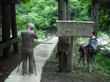 >さて小千谷のファミレスから津南町のに、向った我々およそ40分ほどで秋山郷に入り、目指す目的地の「見倉橋」に到着です。駐車場にはマイクロなどの車が数台・・・・夏場でも結構人が来るんですね〜ここは冬場にきて行けなかったところやっと念願の橋が見れます。急な山道を暫く下ると橋が見えてきました。途中、すれ違ったマイクロの団体さんがハアハア言いながら登ってきましたが確かに帰りのことを思うと気が重くなる勾配です(´ω`)橋はつり橋、人が歩くとユラユラ揺れるちょっと怖いです。おまけに橋をカバーする横の網が大ざっぱ(^_^;)子供はすり抜けて落ちる状態ですから渡れないですね〜(x_x)(写真上・撮影中のメンバー)暫く撮影後、出発津南まできたなら有名なヒマワリ畑も行かなきゃということで寄ることに幸い秋山郷からは裏から行ける距離あっという間に到着です。ヒマワリ畑はイベントが来週から予想外の気温の上昇で早く咲いたヒマワリですからまだまだお客さんは少なかったです。ついでに売店の準備も出来てなかった・・・・・・(T_T)第一の畑はほぼ満開状態お天気も良くなって夏の花らしい雰囲気が回りを覆っていました。やはりヒマワリは暑くなきゃあ〜これで私はここに来るのは3回目今回は初めてのメンバーが3人いましたので寄ることにしました。その後、近くにある名水の誉れ高き「竜ケ窪」に駐車場で協力金¥200払って歩くこと5分程度途中、水飲み場があり柄杓で掬って飲むとこれが氷水かと思うほどの冷たさ(☆_★)美味しかったですよ〜昔は持ち帰ることは自由だったんですが今はペットボトルで¥200だそうです。すべて環境整備金に還元されるそうで・・・・そのためか池に行く道もウッドチップの歩道になってとても歩きやすかったです。この辺の写真は「あちこち」のほうにアップしますのでお楽しみに〜これで撮影は終了その後、帰り道の回転寿司で昼食です。そして十二峠の茶屋さんでスイカを購入おばさんが愛嬌のある人で買い物も思ったより進みメンバー全員スイカ購入で車の中に座るところがなくなってしまう(^_^;)帰ってから食べたけど久し振りに甘いスイカを食べましたv(^-^)夕方6時頃帰宅ドッと疲れて眠ってしまったもも父さんです(*^_^*)走行距離600キロで済んだ今回の撮影行暑さはやはり疲れます(≧ω≦)