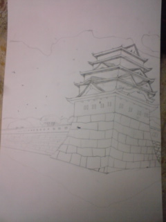 部活さぼってすぐTAG(文房具屋)に行って画用紙買って二条城の絵を書きました。Goo○leの画像検索使って書きました。一時間でこれだけ書けました。