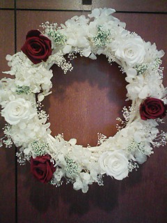 でもとっても素敵です。白いリースに赤もあいますねー。