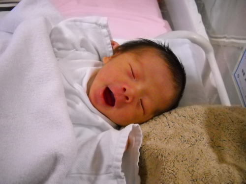 待望の初孫誕生です 1月31日午後5時4分 2960グラムでした 当日は、娘の夫がお産に付き添う予定だったのだけど。。。 月末で忙しく なんと私が立ち会うことになり 娘と一緒に分娩室に入り 感動の産声まで聞けて 最高でした 生まれてくる前は、 娘が、「お父さんは孫が生まれてきたらメロメロに なりそうだけど、お母さんは少し引いて見てる感じかもね。。。」 なんて、言われていましたが なんと私がメロメロになってしまいました 分娩室で生まれたての赤ちゃんを看護師さんが 「おばあちゃんにも抱かせてあげて」 と、言われ、ええおばあちゃん と思ったのですが、孫を見て 「おばあちゃんもいいもんだな」 と、嬉しくなりました 毎日、飽きもせず孫を見に病院に通っています