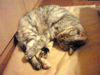 あまりに寒いと蓬が言うので,床暖房をつけ始めました. なので, 蓬,熟睡~ 極…