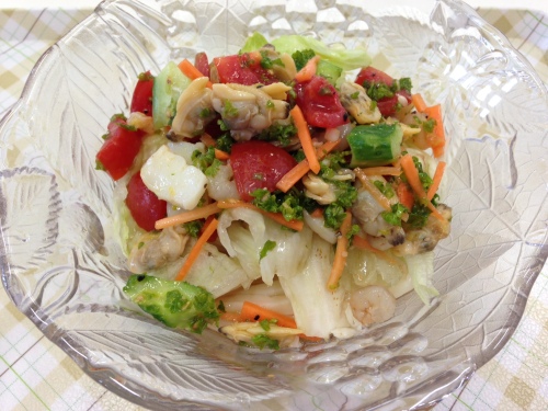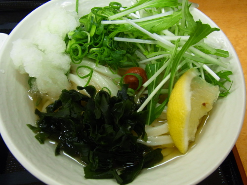 本日の昼飯代 これのみ450円なり!今日も あぢぃぃぃ でした、涼を呼ぶ うどんで 和みましょ!今週の 週替わりうどん、最終日の日曜で ぎりぎり 実食できました。この うどんも ぜひとも 定番メニューに格上げして もらいたい出来栄えです。マリネと うどん・・・ これまた goodjobです。きつ過ぎない 酸味も 野菜と海鮮の具そのものの 味をひきだしてます。まいどのことながら びしっと 冷えた 麺が 美味い!ランキング応援お願いします!ワンクリックお願いします