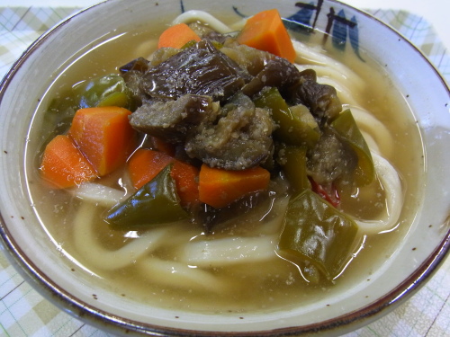 本日の昼飯代 これのみ380円なり!強風の中 汗だくで ちゃりんこで参上の 秋津風師匠と同じものを 同じテーブルで うまぁぁと 叫びながら 頂きました。そんな こんなで今日から 7月ぅぅ、もう 今年も 半分 過ぎ去った・・・が あと 6カ月間、毎週 この 高雄さんの 週替わりうどんが食べれるぜぇ7月8日の テレビ『特選うどん遍路』は 高雄さんですよ、皆さんテレビの前に 集合しましょう特選うどん遍路の詳しいことはこちらてなわけで、今週の週替わりうどんが こちらかけだしに ごまで炊いた 野菜、特に 茄子が むっちゃ合うなぁぁ!美しい カットの人参を見てましたら、 ひやししっぽくが 食べたくなったとです。ランキング応援お願いします!ワンクリックお願いします