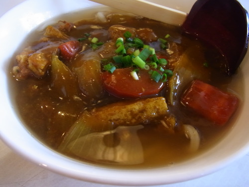 本日の昼飯代 これのみ250円なり!今年 初 さぬ一さんの ecoメニューなり!大将と お店のスタッフの女性の皆様に まずは『おめでとうございます、本年も よろしくお願いします』きっちり ご挨拶っす!そして 今週の ecoメニューは こちら熱々の スープカレー的な うどんですね!ぱっと見 鮮やかな 金時にんじんと『おあげ』さんの ざく切りが 目を引きましたがひとまぜすると 鳥のからあげが どっさり 入ってまっす!この からあげ 甘酢仕立て?かな カレーの味と だしの味が しみこんでうまぁぁぁ! 食べすすむほどに カレーと スープ(だし)が 混じり合ってなんというか 絶妙の 味に変化していくとです、 後めしが ほしかったけどここは 今年の目標 ダイエット・・・ がまんがまんです!この味と 具の多さ 豪華さ・・・ きっと これ 250円ちゃうますわ、採算度外視ですね、 あぁ ありがたいことです。2014年の この 絶品の麺を どーんっと 食べるじぇ!懐かしい写真はこちらランキング応援お願いします!ワンクリックお願いします