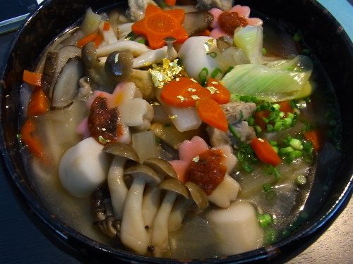 本日の昼飯代 これのみ700円なり!皆さん あけまして お麺でとうございます。たぶん 午年も いまのところ ほぼ 毎日さぬきうどんの 予定です 『本日のオムライス』 はたまた 『本日の炒飯』に 進化していたらごめんなさいですが、どうか よろしくお願いいたします。さて 2014年 初日の 元日は 水曜日です! ってことは 『水スペ』です、『こいつぁ 春から 縁起が いいや』 なのであります。一年の計は 『つるまるgee』にあり元日から 大将たくちん 気合い入ってますぜ!めでたい正月に ふさわしく 練り梅をのせった 桜の『ふ』に 、『星』や 『鶴』の人参、里芋、大根、しろねぎ、ごぼう、鶏肉、しめじ、こんにゃく、青ねぎ、そして 金箔が ぱらぱらっと・・・初詣に時間がかかって 遅れ気味で お店に到着するとこれまた いつもの水曜のように 秋津風さん まいさん+まいさん相方、ラブフェニさん・・・ っと 麺友さん達が うどん談義に 花を咲かせておられました。 いいなぁぁ、人生の真ん中に 『うどん』を据えてる 皆様方本年もよろしくなのであります。懐かしい写真はこちらランキング応援お願いします!ワンクリックお願いします