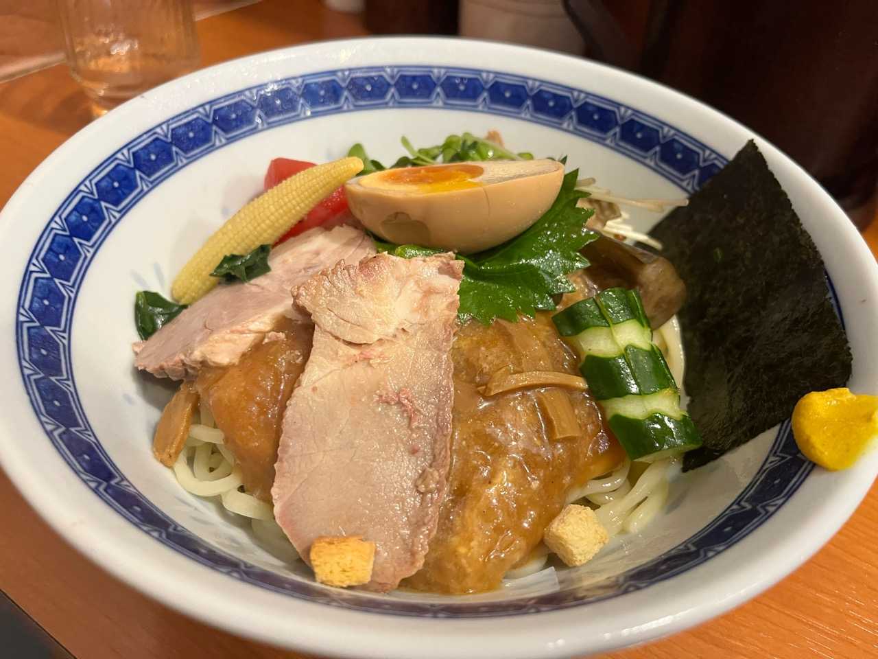 新規開拓店、ここは食券制のお店なり!本日の昼飯代は冷やし中華並のみ1300円なり!テレビで、ここいそじさんの冷やし中華見ちゃった〜ら、もうそりゃ運命かと思いましたゆえ、炎天下突撃しますたー。約25分並んだど〜💦シャーベット状のスープが、着丼するころにはええ具合に溶けてまして、太麺に絡まればうまぁぁぁぁ^ - ^ 異次元の旨さの冷やし中華であります。まずもってこの太麺が美味いぃぃぃぃぃぃぃ!味噌つけ麺、中華そば、味噌ラーメンとかも喰わんといかんと思います。魚粉かぁぁぁ