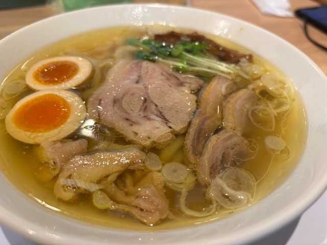 新規開拓店、ここは一般店なり!本日の昼飯代は、天草大王塩ラーメン950円に餃子🥟440円でしめて、1390円なり!麺はちぢれ麺よ^ - ^博多から熊本にやって参りました〜!熊本の麺友おすすめの敢えて、熊本ラーメンやないここに突撃!お昼時店内満員で、15分待ちました。大将がワンオペで作ってはります。麺が独特??自家製ならではですね!もちもち感すげっ!いゃぁ、この塩ラーメン🍜うまぁー!!!!優しいスープです。煮卵もチャーシューもちょうど私好みでありんす。🥟も手作りで、パーフェクト!焼き具合とか神技かと思いました!あぁ、また来ますよ❤️🎵♪