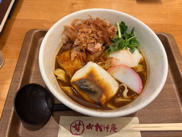 新規開拓店、ここは去年?開業した商業施設『大宮門街』にありまするコメダ珈琲の系列店「コメダ和喫茶おかげ庵』なり!本日の昼飯代はお月見味噌きしめん970円に焼き餅トッピング160円でしめて1130円なり!あのコメダ珈琲の新業態の和喫茶が大宮にできたニュースは聞いてまして、本日はぜんざい?お団子? を食べに来ました。がぁぁぁぁぁあ、お店に入ってびっくりぽん・・・なんときしめんメニューが大充実っす!かつ今はお月見祭り開催中ここはお月見きしめん、喰っとくしかないっしょいやぁ、お月見祭り魅力的なメニューばっかやん、いいねぇぇ八丁味噌香る出汁に、きしめんと月に見立てた半熟玉子におあげさん2枚にたっぷりの鰹節と三つ葉とかまぼこ・・・ これは美味しいっすよ!でもって、やき餅うま!!! これはやはり次回はぜんざい喰わなあかんと思いました。あ