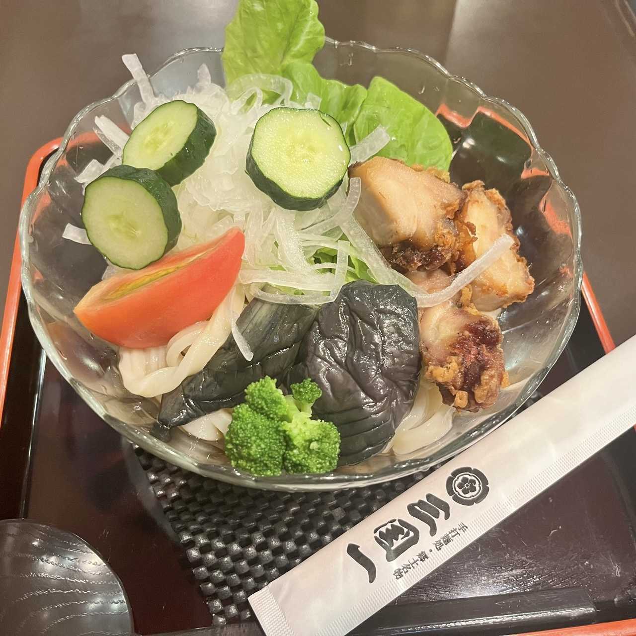新規開拓店、ここは一般店なり!本日の昼飯代は夏野菜と鶏唐揚げのさっぱり梅ダレうどん(冷)のみで1200円なり!仕事で都庁に行った帰り道にぼーっと歩いておりましたらうどんの幟が歩道にありまして、つられて歩いてたらこの看板が・・・三国一さんは夜は呑めるうどん屋さんのようです!老舗感あふれる落ち着いた店内は女性のお客さんが多かぁぁでした。サービスランチのこのうどんなかなか美味しかったですぞ!野菜不足ちょいと解消っす!梅とうどんって、なんでこないに相性いいのでしょうか!!太目の平打ち系麺はこしがあって、するする食べれちゃいました渋いなぁぁ、鍋焼きうどんと富士山って🗻🎵