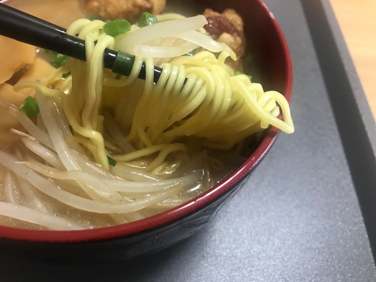 本日の昼飯代 このラーメンに オアシスで買ってきた『もも肉あごだし唐揚げ259円』